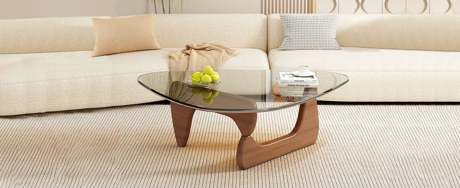 Triangle Glass Coffee Table with Wooden Base